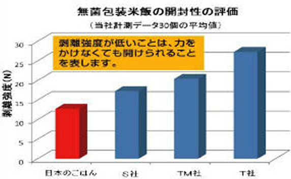越後製菓の「日本のごはん」は、包装素材「ポリプロピレンの単一素材」を使い、接着樹脂を使用していません。実は従来製品の容器の多くは、複数の材料を接着樹脂で張り合わされたものです。レンジで温めた際に気になるいわゆる「パックご飯の独特の匂い」は、実はこの接着樹脂のものなのです。「日本のごはん」はこの接着樹脂不使用のため、温めてパックを開けると炊きたてのお米の良い香りが立ち上がります。