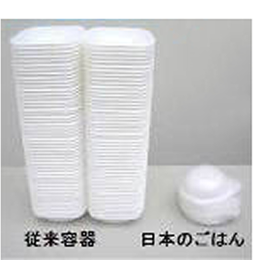 また、パッケージにも工夫を凝らしいます。接着剤不使用の容器を使うことで、これまでパックご飯特有のものと思われていた独特の「匂い」をカット。炊きたてそのものの美味しい香りが楽しめるようになりました。また、この容器に使われる資材は従来品の1/5程度とかさばらなくて捨てやすく、省資源にもつながります。