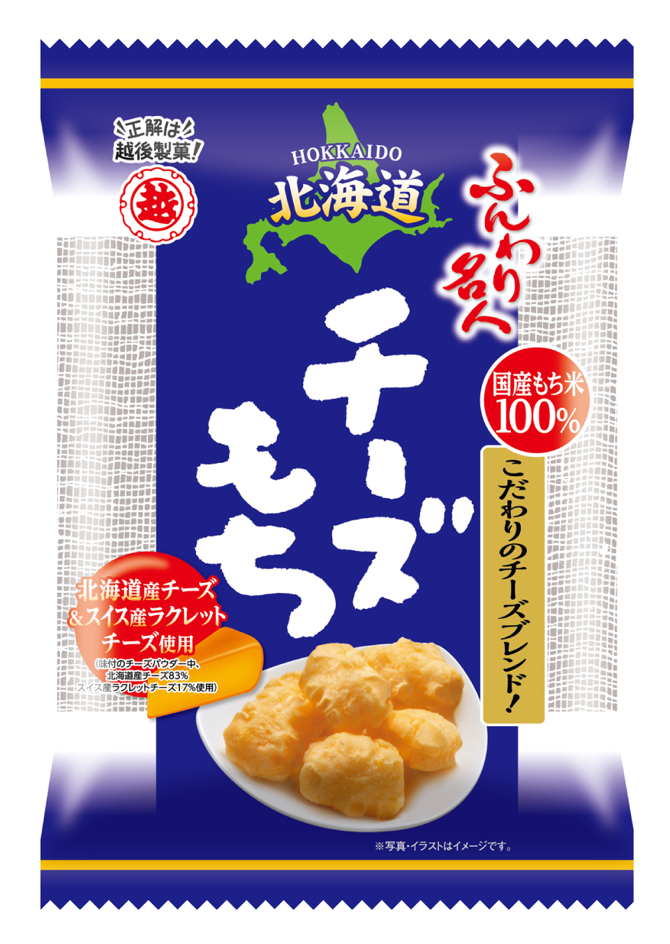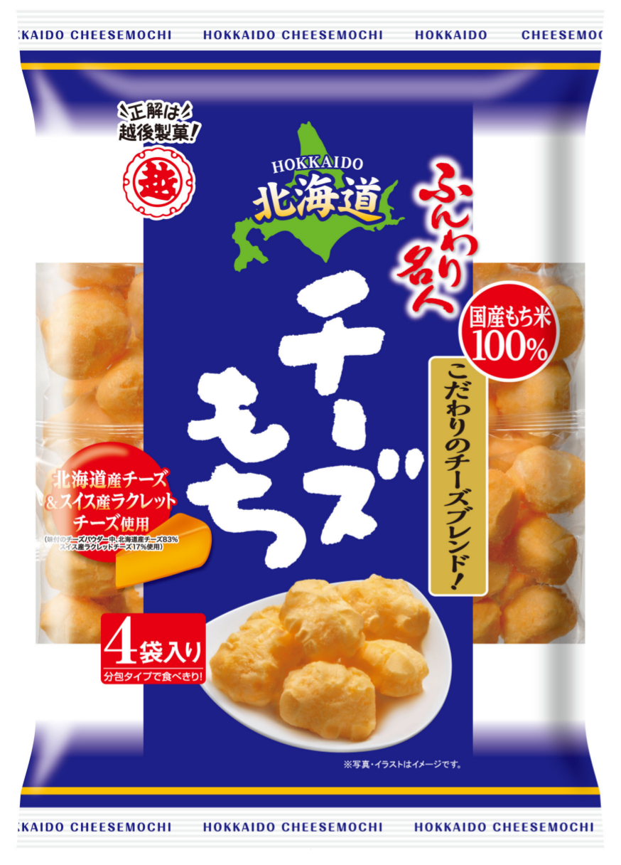 Cheddar cheese is kneaded into the mochi and mellowly finished with Hokkaido cheese and Swiss raclette cheese.You can enjoy the mellow taste of cheese that spreads softly in your mouth.