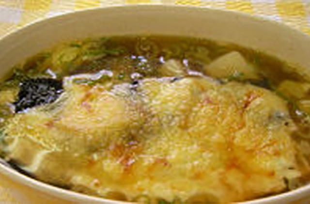 めんつゆで食べるおもちチーズグラタン