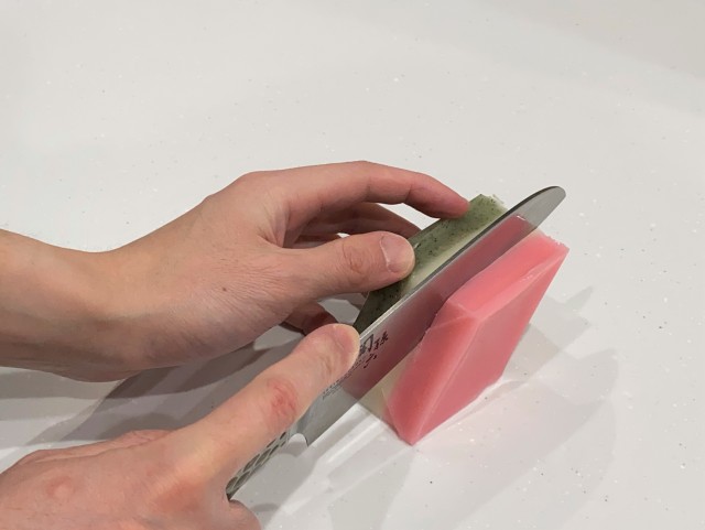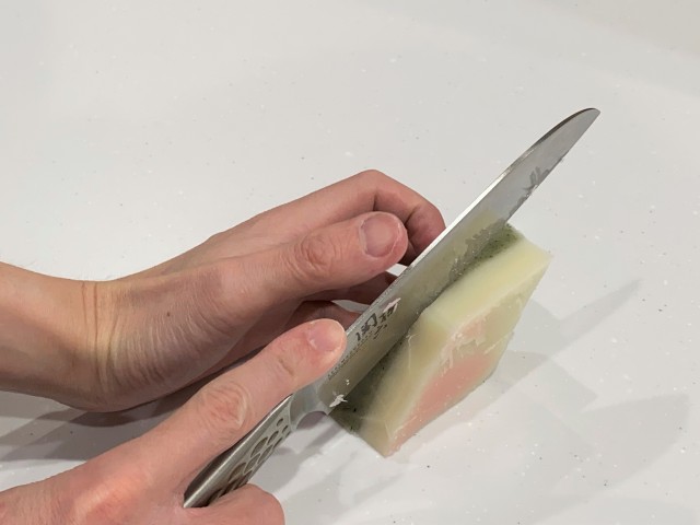 色の境目から包丁を入れて、切り分けてください。