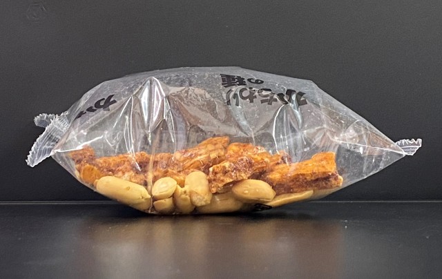 中身のおせんべいとピーナッツのおいしさを保つために、窒素(ちっそ)を入れていますので、小袋が膨らんでいるように見えますが、異常ではありません。ご安心ください。