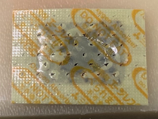 脱酸素剤は内容物である鉄が酸化する(錆びる)際に、周りの酸素を吸収する性質を利用しています。お餅に含まれる水分が個包装内外での温度差により結露した場合、その水分が脱酸素剤にしみ込んで内容物である鉄の色が透けて黒色に見えることがあります。個包装に貼付している脱酸素剤の特性であり、品質上の異常ではありません。また、お餅への影響もございませんので、ご安心ください。