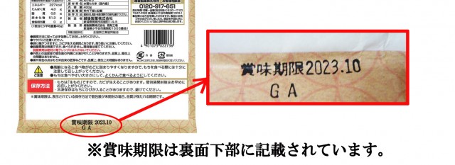 ※賞味期限は裏面下部に記載されています。