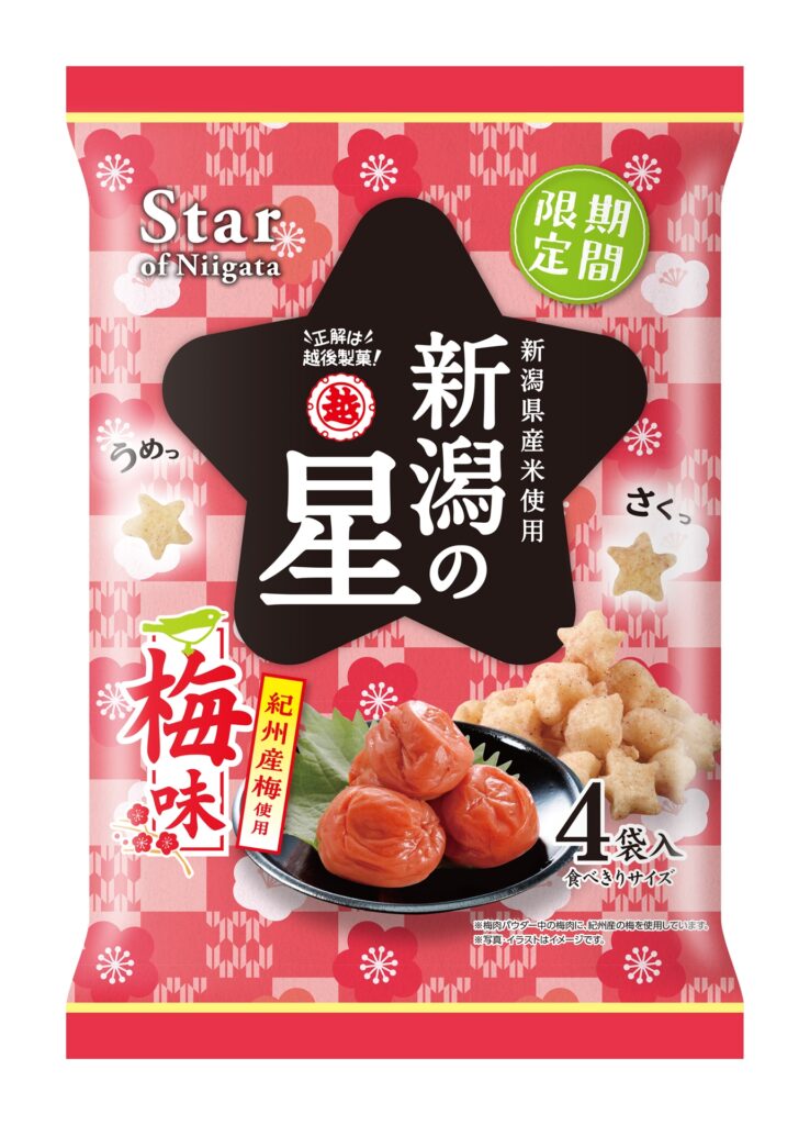 越後製菓では「新潟の星 梅味」を、3月23日から期間限定で全国発売いたします。