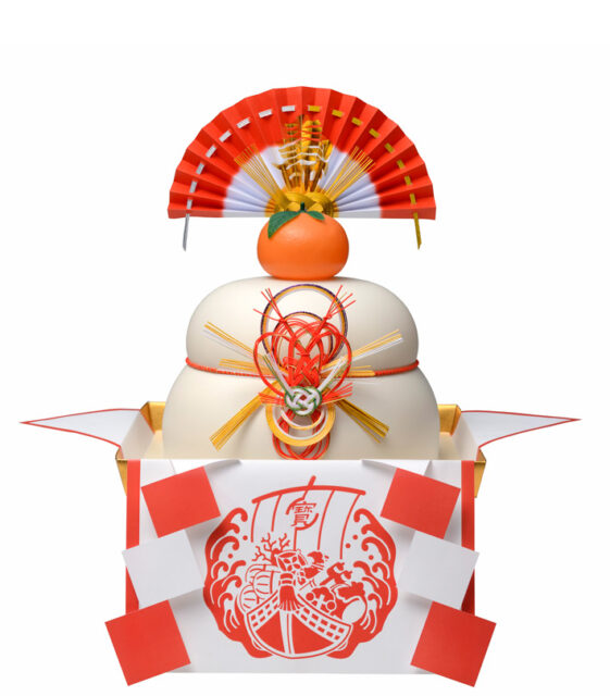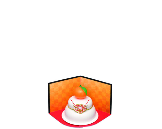 容器の中に個包装の丸餅が入った鏡餅です。お餅はふっくらカット入りで、よりふっくら焼けるようになりました。 組み立て楽楽お飾りセット付きです。