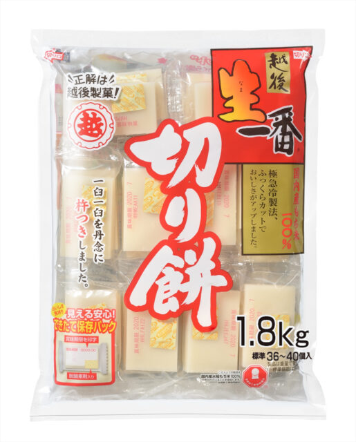 国内産水稲もち米100%を使用しています。調理をした時に、搗きたてのお餅のような強い腰や滑らかな舌ざわりに復元する事が特徴です。できたての美味しさを保つため、個包装と外袋に脱酸素剤を封入したダブルバリア包装です。個包装にも賞味期限を印字することで、外袋開封後も安心して長期保存が可能です。